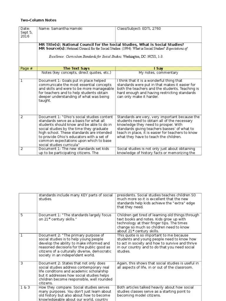 TwoColumn Notes Template bp2 PDF Teachers Curriculum