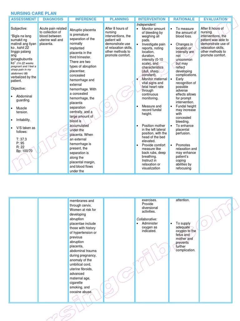 Mild vaginal bleeding and uterine irritability. View abruptio placentae.pdf from nursing nur3411 at keiser university. Web alterations in health (diagnosis) abruptio plaentae or placental abruption pathophysiology related to client. Web system disorder template ati for placental abruption active learning template: Web view full document.