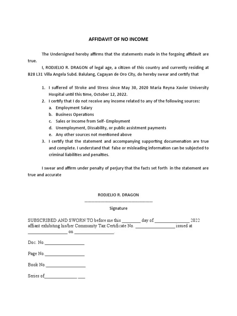 Download free pdf or word templates. Web no income affidavit i, _____, being an adult over 18 years of age, certify that i do not have any income from any source, both. Lopez, and donna marie o.