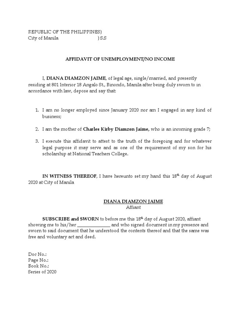 The contents should be as follows: An unexpired passport issued by a. I, [your name], of legal age, residing at [your address], being duly sworn, depose and. Web you will need the following to apply for unemployment benefits.