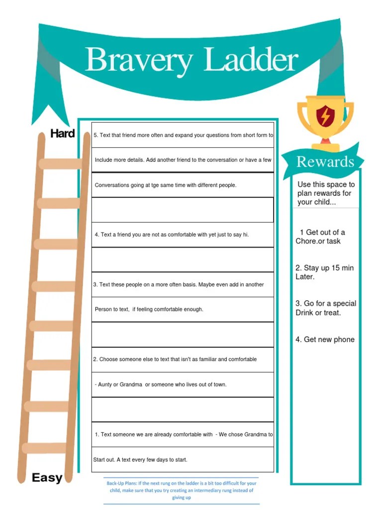 Brave Talking Ladder Scary Chart Selective Mutism Exposure Worksheet
