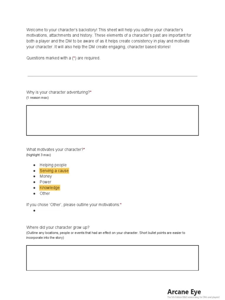 Dnd Character Backstory Template