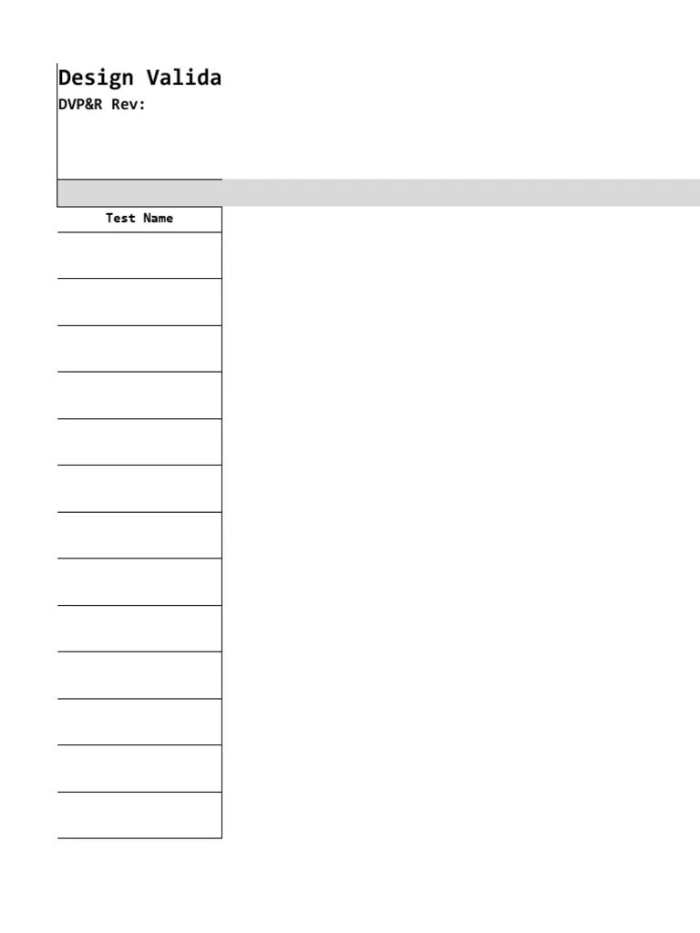 Dvp&R Template - Web learn how intertek can help you with your dvp&r needs, from planning and testing to reporting and failure analysis. Xfmea’s dvp&r utility allows you to automatically generate a dvp&r based on relevant. Web dvp&r process dvp and dvr existing product or system • the design verification plan (dvp) documents the strategy used. Design fmea anticipates possible errors and risks. Web the design verification plan and report or dvp&r is a planning tool for the systematic identification of required tests and validations. • a design verification plan and report (dvp&r). Both work closely together and need to be synchronized for a smooth start into serial production. Web dvp&r is an acronym for design verification plan and report. The purpose of dvp&r is to manage and document your tasks.