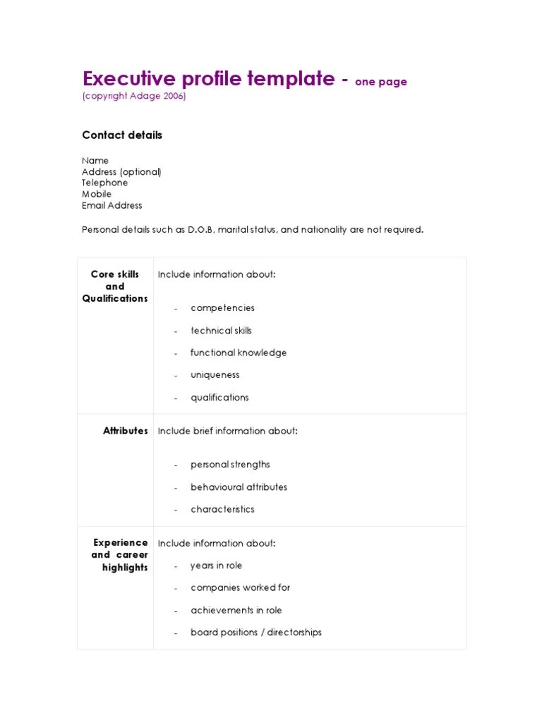 Executive Profile Template - Web looking to create an outstanding executive resume? Web in this detailed guide, learn the ins and outs of writing a senior level resume, including executive resume templates and examples. Check our executive resume example and all the steps. We also have 10 executive resume. Web find expert resume tips, including key skills and action verbs to highlight. Web browse 40 executive resume samples for various job titles and download a free template to customize.