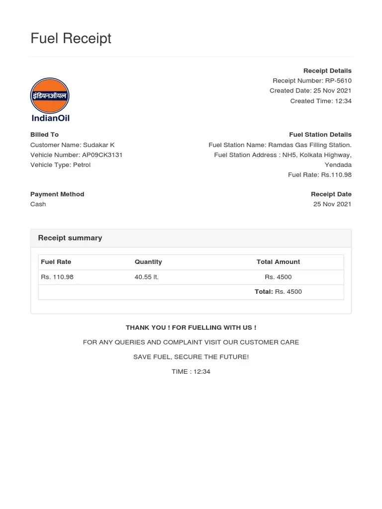 Fuel Receipt Template