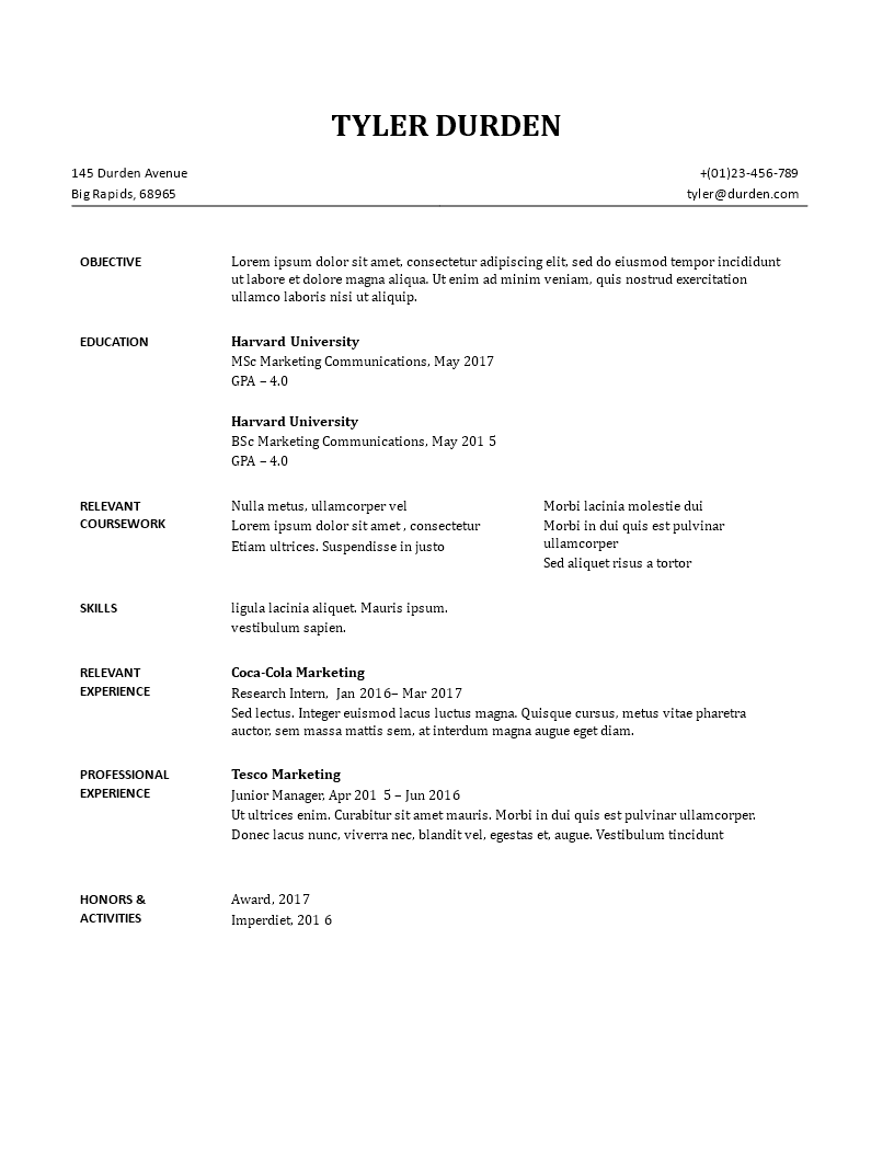 Free Harvard Sample Resume in Google Docs and Microsoft Word