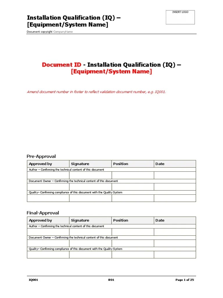 IQ001 Installation Qualification Template r01 Sample View PDF