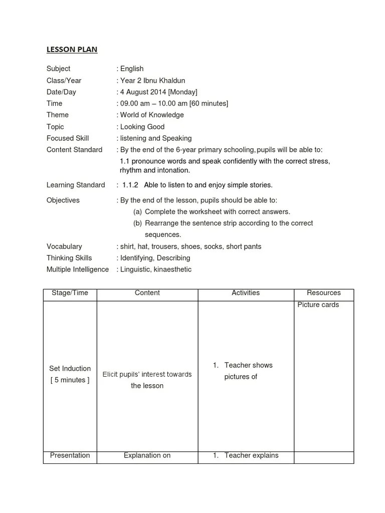 Lesson Plan Year 4 Language Art PDF Lesson Plan Learning