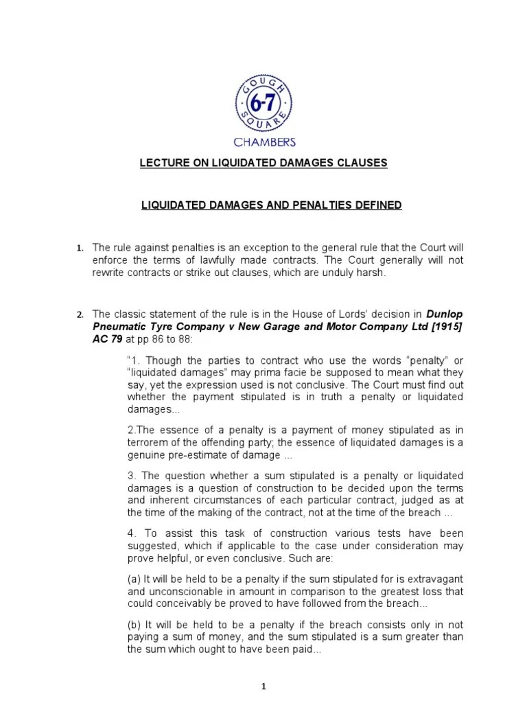 Penalty clauses and liquidated damages Traps for the The Lawyer