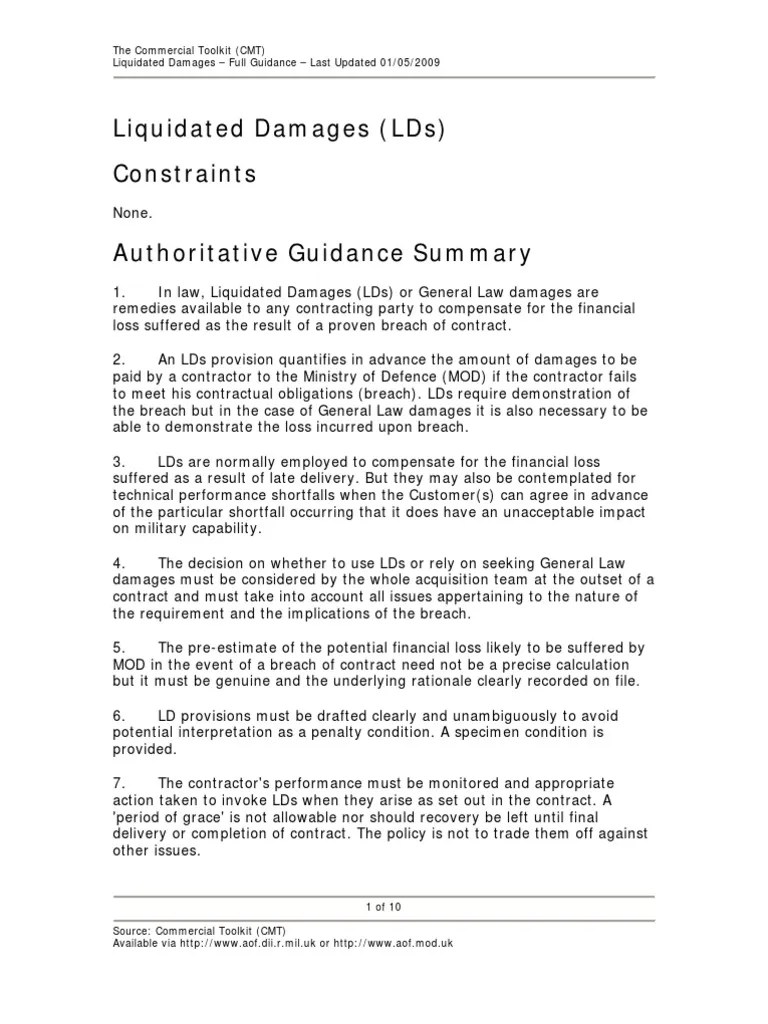 Liquidated Damages Constraints PDF Damages Liquidated Damages