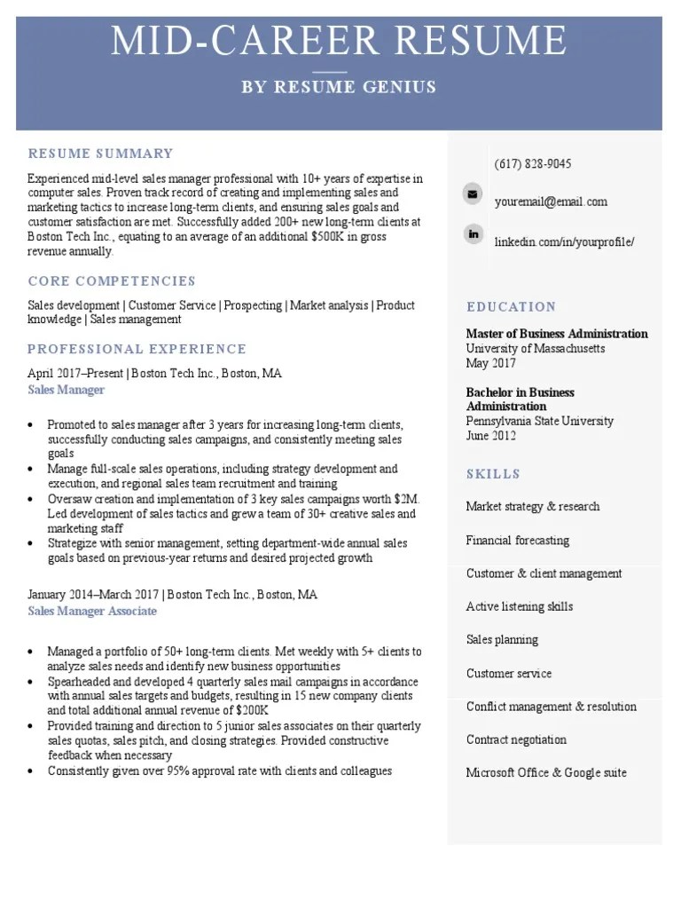 Mid Career Resume Template - Web are you considering a career change? We’ve also included examples, tools, and.