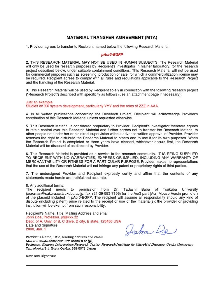 Web a material transfer agreement (mta) is a contract that governs the transfer of tangible research materials between two. Web this is epa's standard template for the materials transfer agreement template (fillable form). Web a material transfer agreement (mta) is a legal contract to document the transfer of physical material between yale university. The following material transfer agreement (mta) is.