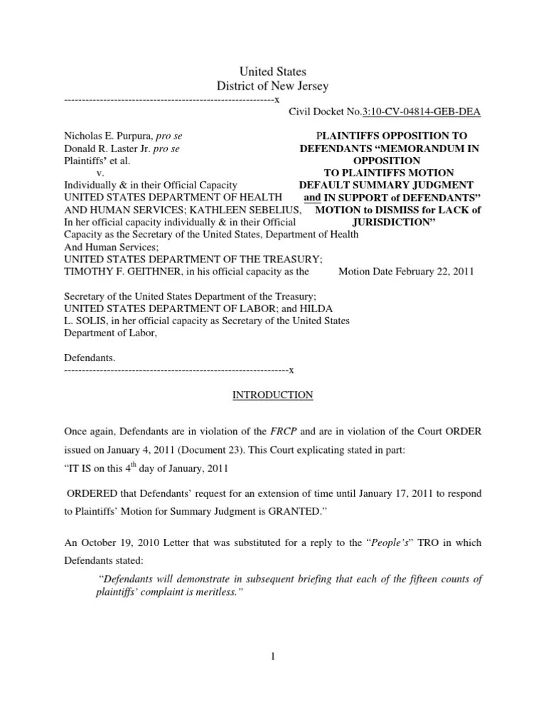 Opposition to Motion to Dismiss and Request for Summary Judgment Motion