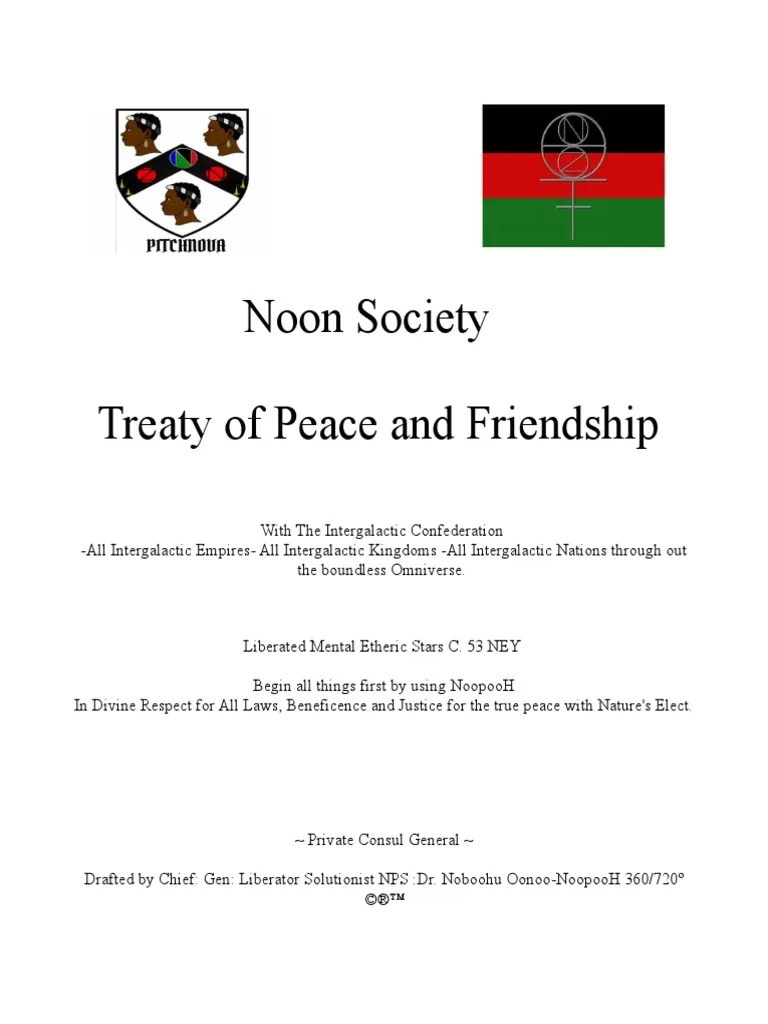 Noocratic Society Treaty of Peace and Friendship PDF Treaty Port