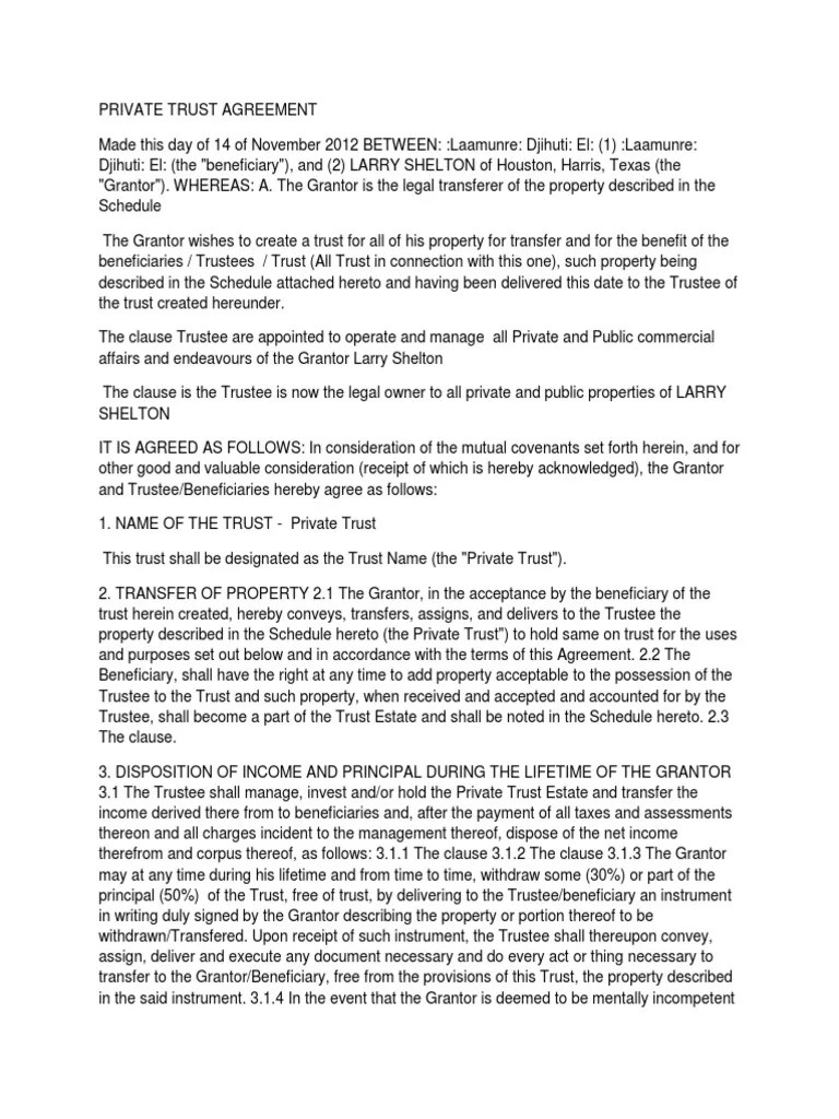 Private Trust Trust Law Deed
