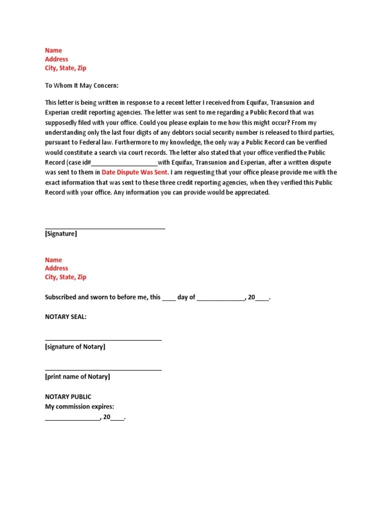 Web here’s what your letter needs to do: Draft a clear and concise dispute letter for each credit bureau, explaining the inaccuracies and providing. Web write a dispute letter: Web remove public records from credit reports using these essential letters. These include, irs tax liens, state tax liens, judgments, and bankruptcies.