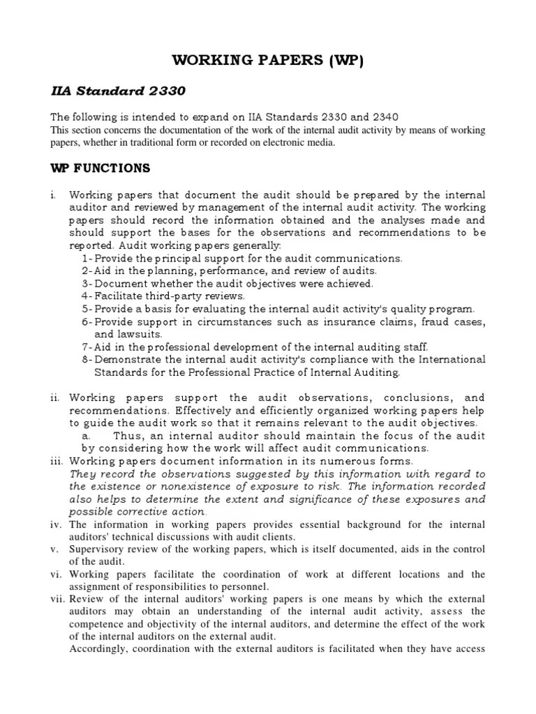 Its helpful to record various. Starting the internal audit activity: Here is the example of audit working papers: Web here you can download documents and templates. Web audit working papers are essential for maintaining the quality and integrity of the audit process.
