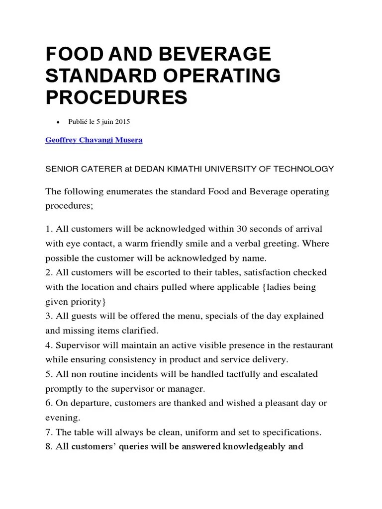 Sample Restaurant Standard Operating Procedures The Document Template