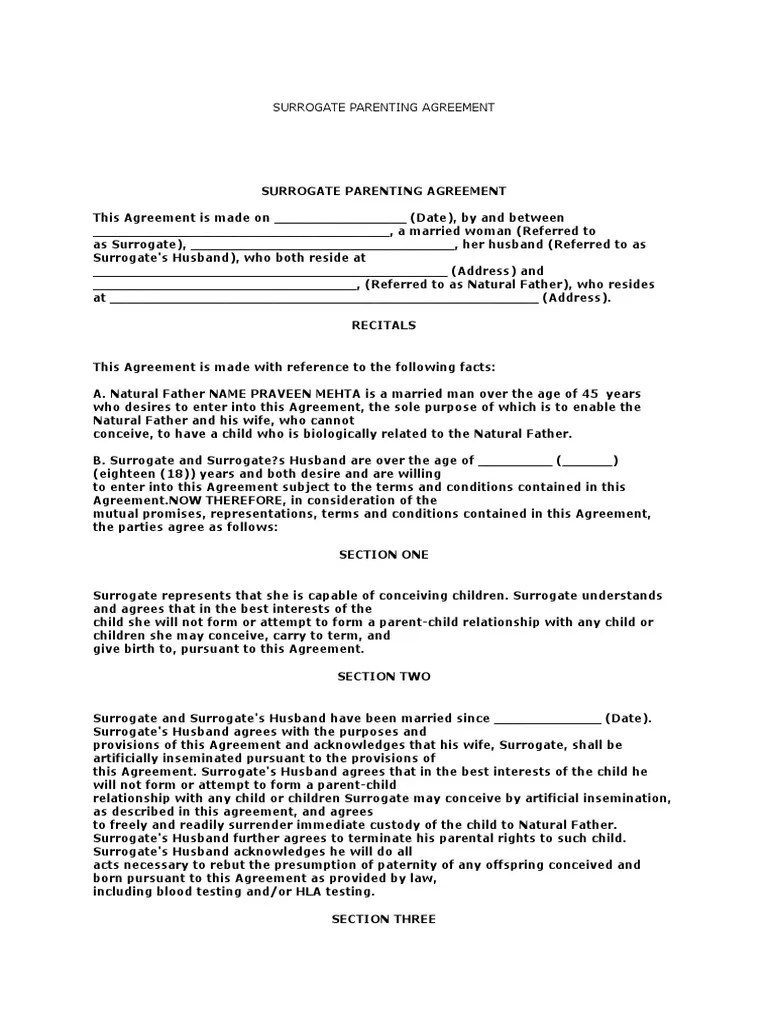 Surrogacy Agreement Template Fill Online, Printable, Fillable, Blank