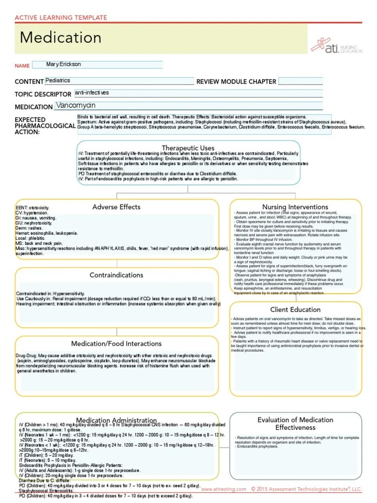 Web a document for pediatric nursing students to use as an active learning template for vancomycin medication. Web nursing document from old dominion university, 1 page, active learning template: It binds to bacterial cell wall.