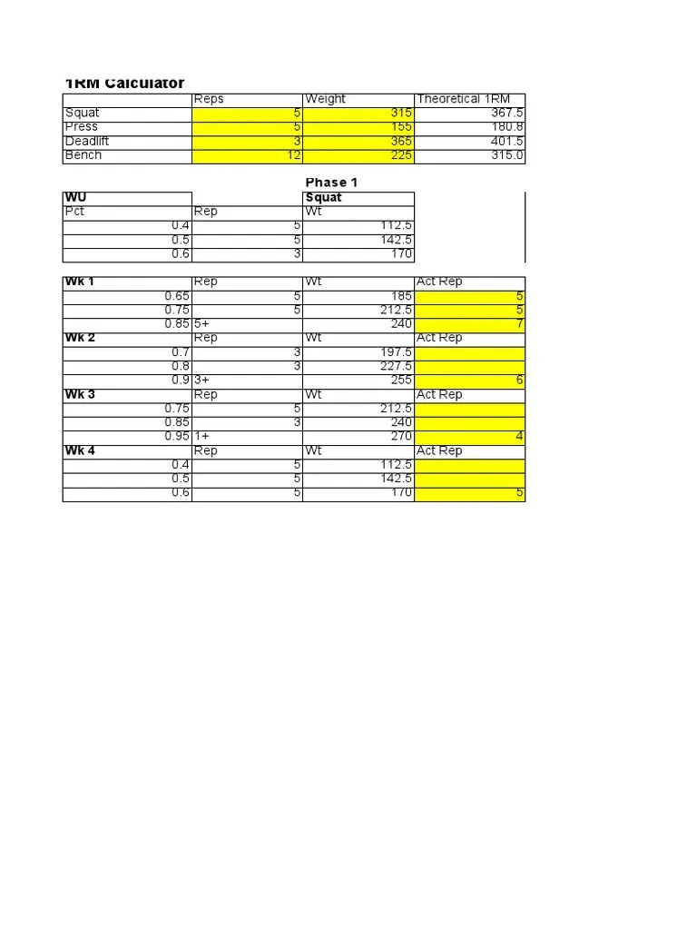 10 Wendler's 5/3/1 Program Spreadsheets [Resource Page]