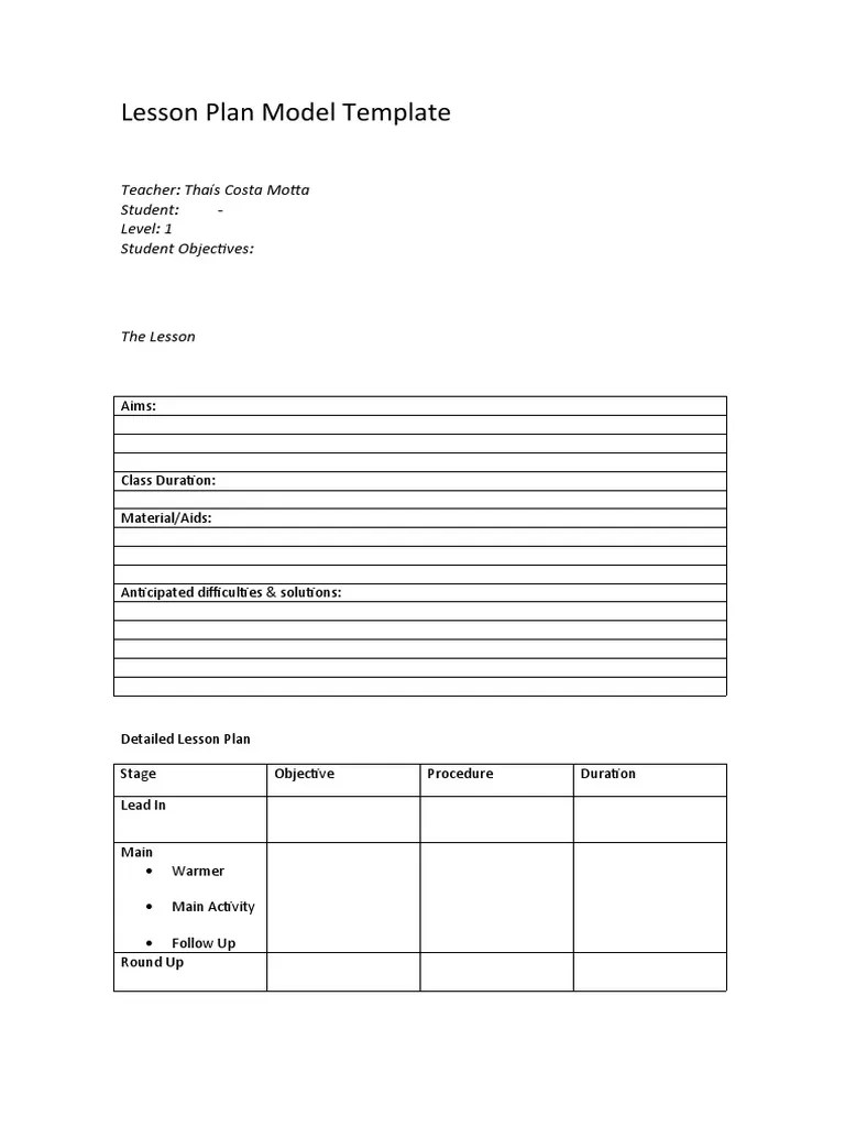 Model Sample Lesson Plan Format (1) Lesson Plan Teachers